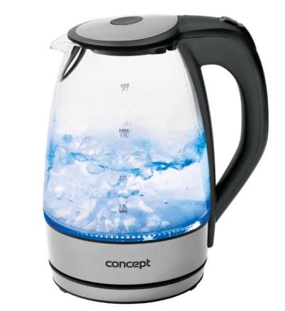 A Concept RK4030 vízforraló kancsó az alaplapon 360°-ban elforgatható. átlátszó vízjelével és kék színnel világító LED-jeivel mindig kéken világít, amikor használatban van. A vízforraló nagyon erős és egészségre ártalmatlan üvegből készült. Az 1,7 literes kapacitással akár 7 csészét is készíthetsz vele töltésenként, így akár egy nagy családot is kiszolgálhatsz vele. Finom vízkő elleni szűrővel rendelkezik. A vízforraló kettős biztonsági rendszerrel van felszerelve, amely automatikusan kikapcsol, ha a víz forr, vagy ha leveszi az állványról.