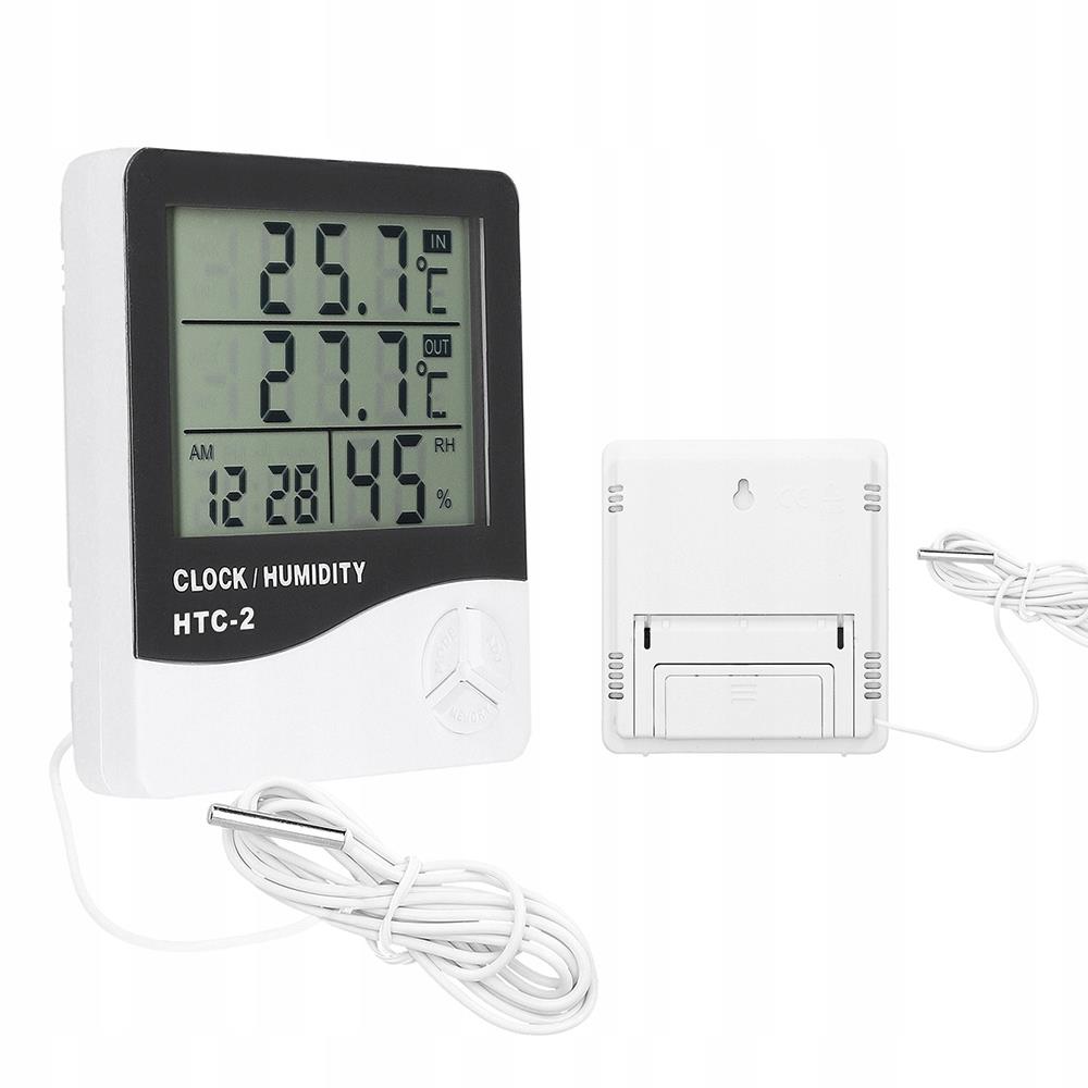 Multifunkciós digitális kijelző nagyobb kijelzővel a megjelenítéshez.Az aktuális belső és külső hőmérséklet, a relatív páratartalom, valamint az aktuális idő és dátum kijelzésére tervezték.A nagy LCD kijelző egyszerre jeleníti meg a leolvasásokat, amelyek akár az idősek számára is könnyen leolvashatók.A hőmérő méri a hőmérsékletet, amely Fahrenheit vagy Celsius fokban is megjeleníthető. A "Memória" gomb megnyomásával a maximális és minimális rögzített leolvasások láthatók a hátoldalon mozgatva.A HTC-2 egy továbbfejlesztett változat, 2 vonal a bemeneti / kimeneti hőmérséklet kijelzésére, 1,5 méteres mérőkábellel (csak hőmérséklet-érzékelés), pontosabb paraméterek érhetők el bizonyos helyeken, mint például akvárium, raktár, akvárium, gépek, laboratórium stb.Ez a hordozható 3 az 1-ben higrométer egyesíti a hőmérőt, az órát és a higrométert, nagyon praktikus otthon vagy az iparban.Az óra megjeleníti a 12/24 üzemmódot, a riasztás be-/kikapcsolását, az időt/dátumot, az összes állítható és visszaállítható, hosszú megnyomást, majd beállítást.Vezeték nélküli kialakítás és csak AAA elem, alacsony akkumulátor-fogyasztású termékek.Pontos érzékelő modul, amely figyeli a helyiség hőmérsékletét és páratartalmát. A hátsó kitámasztó segítségével az íróasztalra helyezhető, vagy a hátsó csavarlyuk segítségével a falra szerelhető.